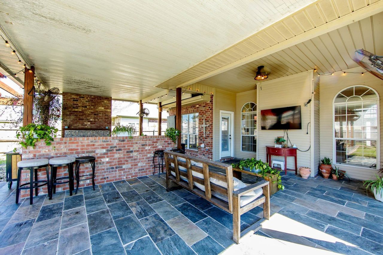 Welcome to this charming 4-bedroom, 2-bathroom home in the desirable Sugarwood Subdivision. Built in 2003, this home features impressive 14-foot ceilings in the living room and one of the bedrooms, along with crown molding throughout for an elegant touch. Step inside to a bright and inviting living room highlighted by 14-foot ceilings, a cozy fireplace, and ceramic tile flooring. One of the secondary bedrooms also features 14-foot ceilings, creating an airy and spacious feel. The home includes crown molding throughout, adding an elegant touch to each room. The kitchen includes custom cabinetry, granite countertops, a breakfast bar, and an eat-in nook overlooking the backyard. The true standout of this property is the incredible backyard oasis. Enjoy a vaulted covered patio, pergola, and a full outdoor kitchen equipped with a commercial-grade griddle/hibachi grill and gas stove??"perfect for cooking, entertaining, and outdoor gatherings. An outdoor fireplace completes this inviting space, making it ideal for year-round enjoyment.