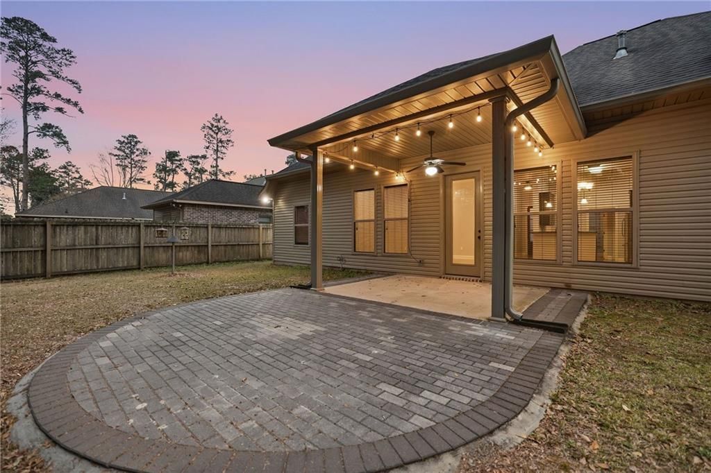 Beautiful home in Hammond near the Hammond Airport offering spacious design and modern finishes throughout! This open, split floor plan features soaring 14-foot ceilings in the primary suite and 11-foot ceilings throughout the rest of the home, creating an airy, upscale feel. The kitchen showcases granite countertops, ample cabinetry, and comes complete with a refrigerator ? making this home truly move-in ready. No carpet! Stained concrete flooring runs throughout for easy maintenance and a clean, contemporary look. Enjoy outdoor living in the fully fenced backyard with a covered patio ? perfect for entertaining or relaxing evenings at home. Additional highlights include NO HOA, a 2-car garage, washer and dryer, termite contract in place, located in Flood Zone X, and the property has never flooded, transferrable flood policy, grocery store just a couple minutes away. Convenient Hammond location with quick access to town, shopping, dining, and interstate access.